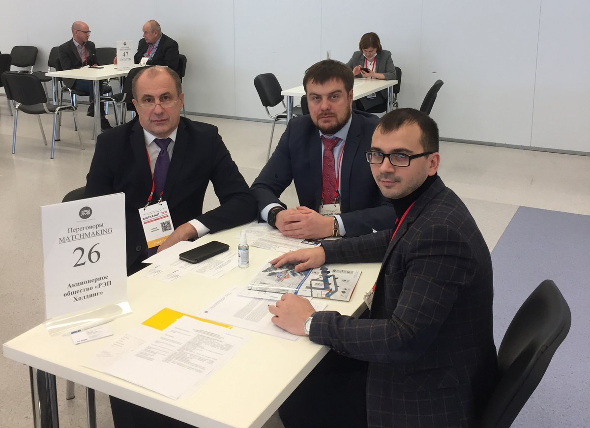 В рамках деловой программы конференции специалисты «РЭП Холдинга» в формате MatchMaking приняли участие в переговорах с представителями субъектов малого и среднего предпринимательства (МСП), занятых в сфере инновационных технологических разработок. Переговоры между крупным бизнесом и субъектами МСП были организованы при содействии Технопарка «Ленполиграфмаш». На встрече обсуждались вопросы возможного сотрудничества в рамках проводимой АО «РЭПХ» программы локализации по изготовлению накатных стяжек для ротора газовой турбины и освоения технологии упрочняющей лазерной обработки лопаток компрессора. В частности, была достигнута договоренность о проведении совместных опытных работ по упрочнению лазером соответствующих образцов лопаток.
